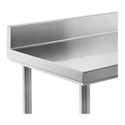 Alzatina Cucina Acciaio Inox Caratteristiche del tavolo in acciaio inox con ripiano inferiore e alzatina. Desideri una cucina in acciaio su misura? Rifinite la cucina con alzatine e scaffali di acciaio inox. Aggiungendo stile alla cucina, il paraspruzzi è un elemento essenziale di quest'ultima.
