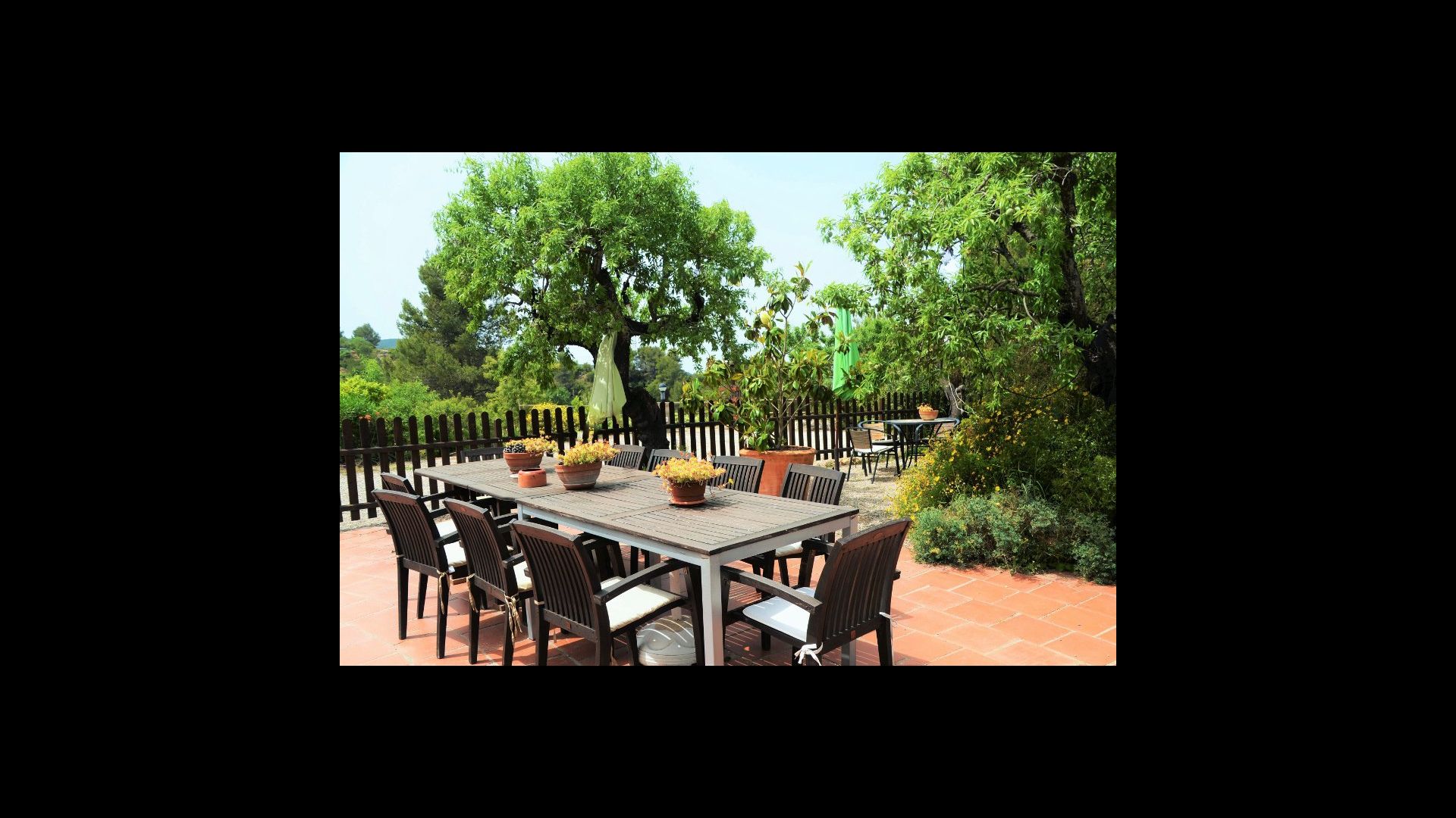 Из окон открывается вид на сад и горы.