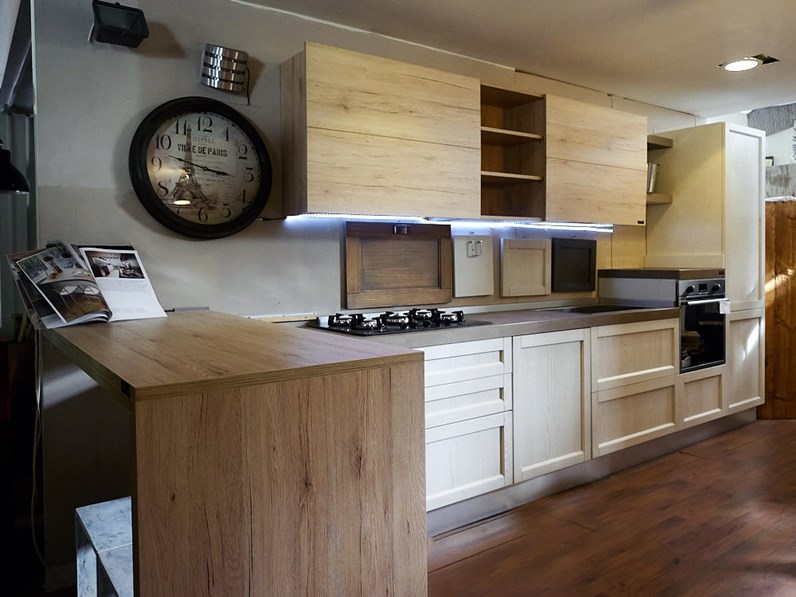 Cucina moderna vintage shabby e rovere chiaro in offerta completa di elettrodomestici modello new vintage frassino e essenza colore rovere hotpoin.